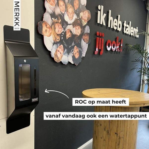 Met een watertap van MERKKwater wordt water ineens aantrekkelijk. Leerlingen/studenten kunnen hun eigen fles vullen met gekoeld plat water een luxe die vaak alleen buitenshuis te vinden is.