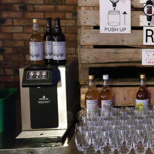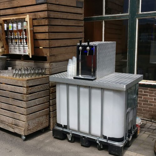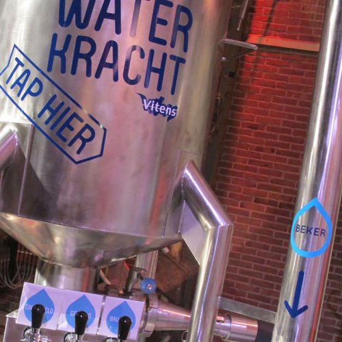 Het team bij DeFabrique zorgt ervoor dat de taps perfect dienst doen in hun drukke locatie! Zo is een watertap verrijdbaar gemaakt en blauwe verlichting achter de tank geeft het geheel een sfeervolle uitstraling. Een andere waterkoeler is geplaatst op een 'sappenbar'. Lekker gekoeld water, met of zonder bruis, met daarin een heerlijke limonade doet niet onder voor de duurdere frisdrank merken. En, het is voor de bezoekers een extra beleving. Tijdens grote evenementen huurt De Fabrique onze mobiele watertap op een mooie ton.