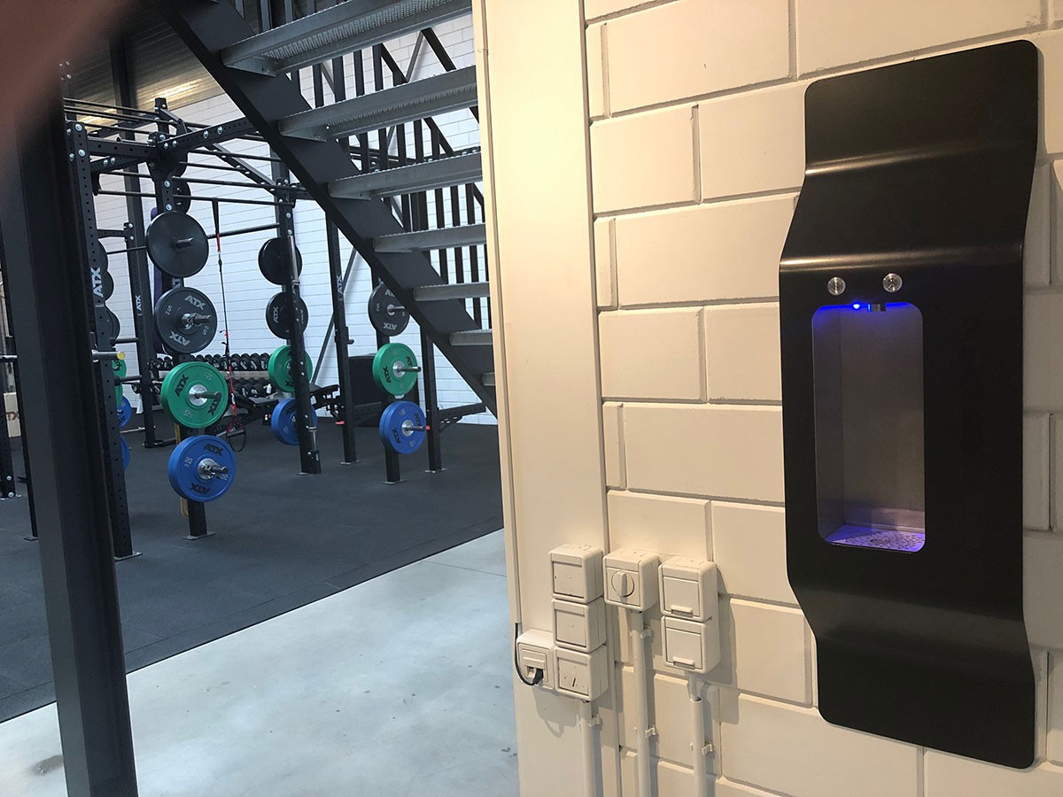 Movement Club 033 richt zich op de persoonlijke doelen van hun leden, met echte aandacht. Dat zie je ook aan de aandacht die ze aan hun waterpresentatie besteden. De Amersfoortse personal trainers hebben een schitterend watertappunt voor hun leden neergezet.Het luxe wandmodel is mat zwart gepoedercoat en biedt naast plat water ook gekoeld bruisend water. Het watertappunt is geoptimaliseerd voor het vullen van bidons.