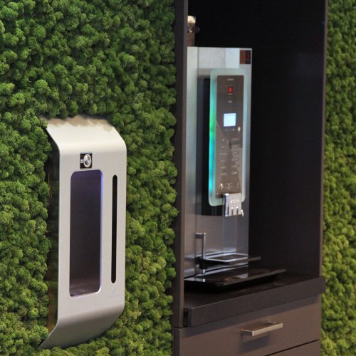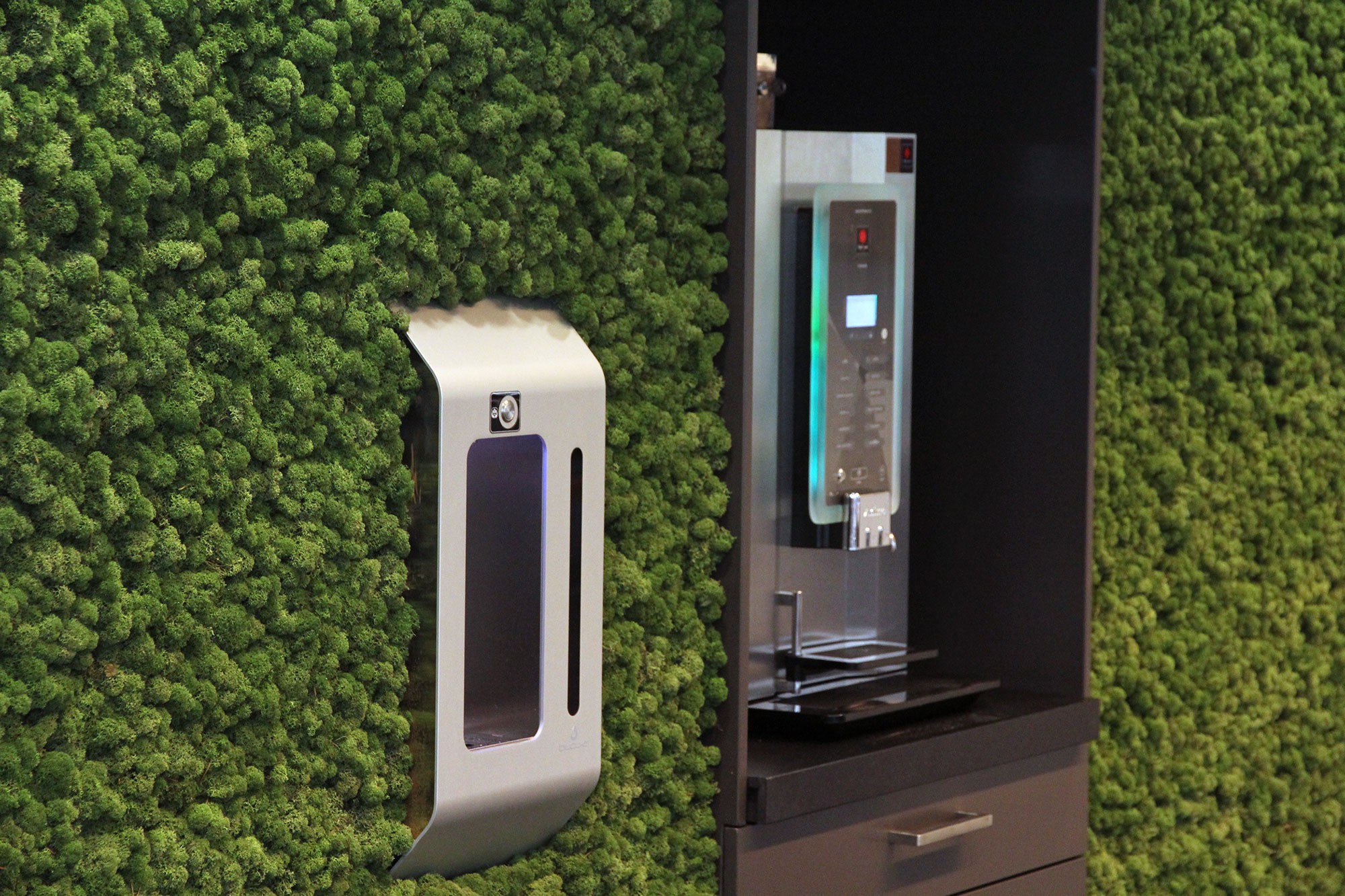 Veldhuis Advies in Heerde besteed veel aandacht aan het welzijn en het werkgeluk van de werknemers. Iedereen wordt dan ook gestimuleerd om te bewegen, minder te zitten en bewust met zijn leefstijl aan de slag te gaan. Een zienswijze waar een MERKKwatertap prima bij past.De waterpresentatie bij Veldhuis is er dan ook een waar we trots op zijn. Het gaat om een inbouwmodel met kraan, dat gepresenteerd wordt in een schitterende groene wand. Benieuwd naar de visie van Veldhuis Advies op duurzame inzetbaarheid? Lees het hier.